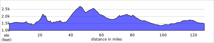 This route climbs roughly 4,700' total feet. All of the climbs are long, gradual and not particularly difficult.